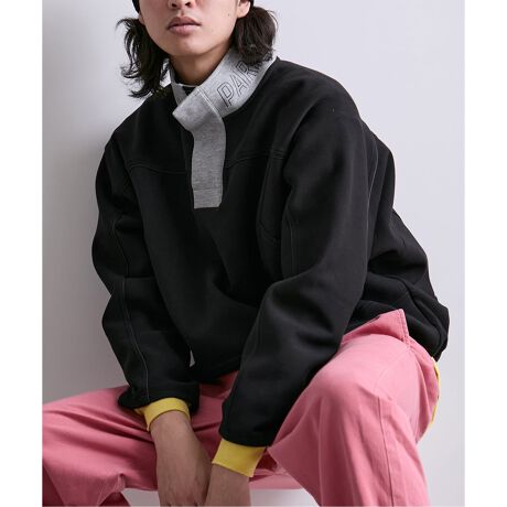 フットボールジャージを再構築した、遊び心溢れるスタンドカラースウェット。