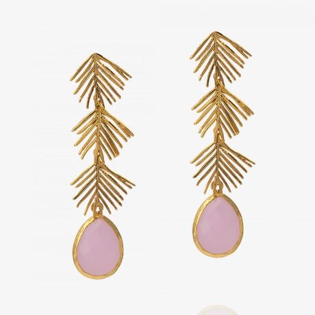 リーフモチーフが連なったデザインの存在感ある天然石ピアス。