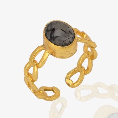 チェーンモチーフのリングに天然石を合わせて存在感のあるデザインに。