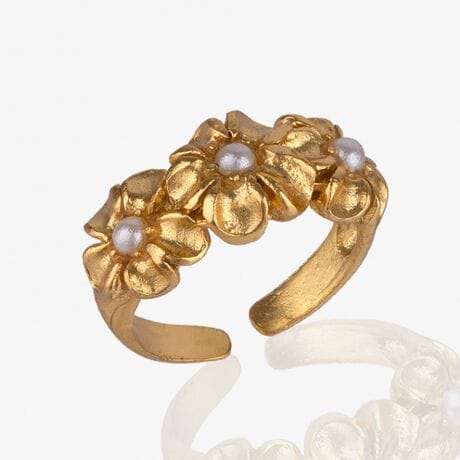 フラワーモチーフを連ねたデザインリング。