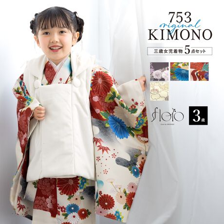SOUBIENのプライベートブランド『floro by SOUBIEN』(フローロ)から女の子の七五三やお宮参りにおすすめな女児用の被布着物セットです。