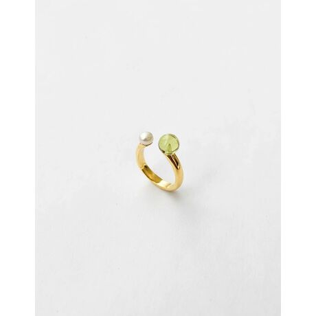 CognacとLemon Greenの2色展開で、小さなオーガニックパールをあしらったオープンリング。