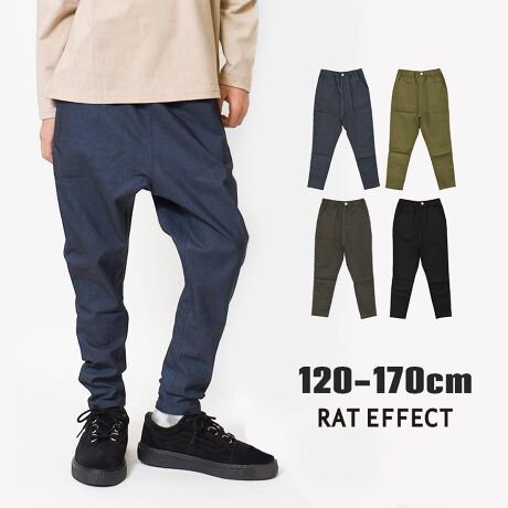 ストレッチサルエルパンツ。キッズに毎年人気のサルエルパンツです◎かなり深めの股上ですが、膝下から裾にかけて細く仕上げているので野暮ったさのないキレイなラインです。ベーシックなバックポケットデザインなど全体的にシンプルにまとめることで、普段サルエルパンツを履いたことのない方にもオススメのパンツです。