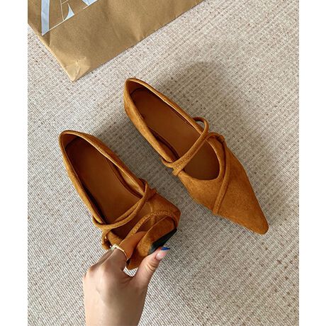 エレガントさと歩きやすさを兼ね備えた、ストラップデザインのポインテッドトゥフラットシューズ。