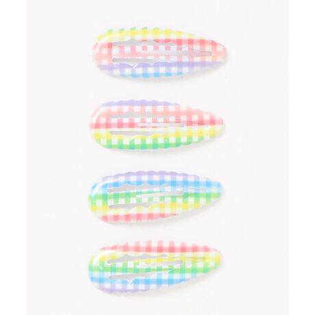 【-aimoha-KIDS-】キッズ カラフルチェック柄 ヘアクリップセット