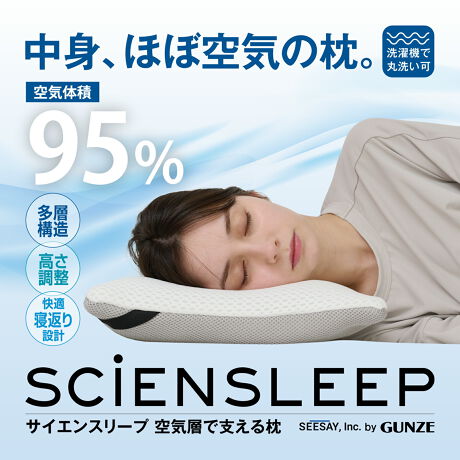 理想の寝心地を追求したSCiENSLEEPピローが、首・肩・頭を自然なバランスで支え、上質な寝床環境へ導きます。