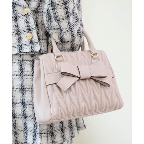 ふっくらとしたキルティングに存在感のあるリボンをあしらった、フェミニンムードたっぷりのバッグ。
