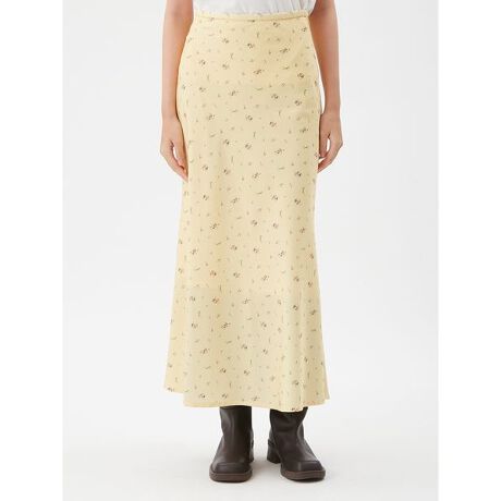 <b>【シックな小花柄がニュアンスたっぷり。腰まわりはすっきり、裾にかけて上品に広がるナロースカート】</b>