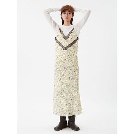 <b>【ウォッシャブル】【レイヤード万能のキャミワンピ。アートのようなヴィンテージ調のプリントと、繊細なレースで鮮度アップ】</b>