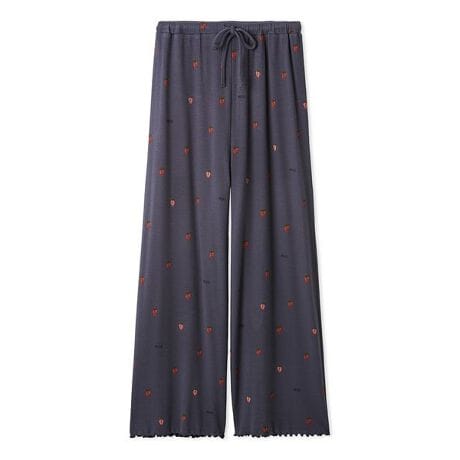 小さないちご柄が大人にさりげなく響く、柔らかなリブカットソーのロングパンツ。保温性のあるHOT FABRICで、寒い季節もあたたかく着用できます。落ち感のある大人っぽいストレートシルエットにこだわり、裾のメローディテールがさりげないアクセントに。カラーは大人かわいいピンクとシックなネイビーの2色展開。同シリーズのロンTと合わせれば、大人かわいいルームスタイルが完成します。