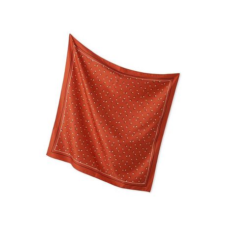 ツヤ感のある上品なサテン調の素材に、差し色になるカラーが目を惹くスカーフは、小花とラインを効かせたプリントがキュート。
