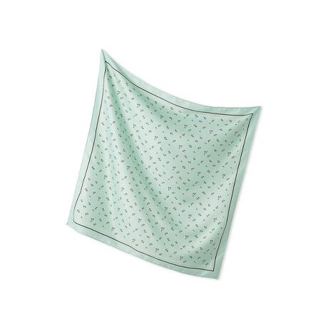 ツヤ感のある上品なサテン調の素材に、差し色になるカラーが目を惹くスカーフは、小花とラインを効かせたプリントがキュート。