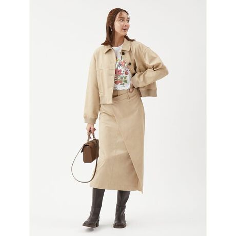 今年らしくリッチな印象のスウェード調素材で、ニュアンスのあるスカート。
