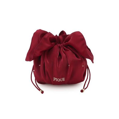 こっくりと深みのある赤い光沢のあるサテン生地を使用した、ストロベリーモチーフの巾着です。いちごのフレッシュな艶感をラメ糸で表現。紐を絞るとお花のようになるフェミニンなシルエットもポイントです。衛生用品をまとめたりキャンディなどを詰めたり、使い方は自分次第。同シリーズのルームシューズやストロベリー柄のルームウェアと合わせて、ギフトにもおすすめです。