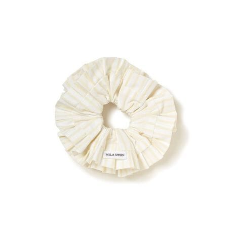 <b>【アクセとしても楽しめる、リッチなボリューム感のシュシュ。シャツとリンクした素材がプレイフル】</b>