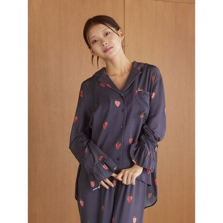 じゅわっとした果肉感をリアルに描いたストロベリー柄で、大人っぽいムードに仕上げたツイルシャツ。裾に前後差をつけた抜け感のあるフェミニンなシルエットです。胸ポケットにはPIQUEのロゴ刺繍をあしらいました。カラーは大人の女性に似合う優しいピンクと落ち着いたネイビーの2色展開。同シリーズのロングパンツや小物と合わせて、大人かわいいコーディネートをお楽しみいただけます。