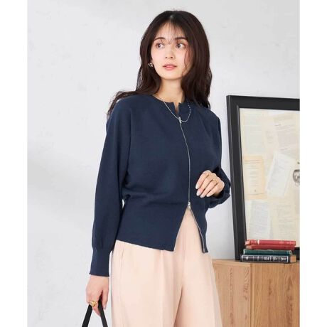 ・定番になりつつある、逆開ファスナー使いのブルゾン型ニットカーディガン