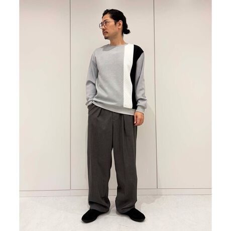 ボトムははきれい目スタイルであればスラックス合わせ、カジュアルスタイルであればタック入りなどのゆとりのあるパンツとあわせるとバランスが良いコーディネートができます。