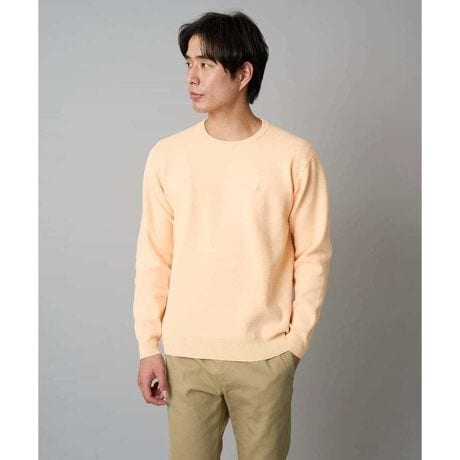 ジャカード編みで柔らかなカラーを表現したクルーネックニット。