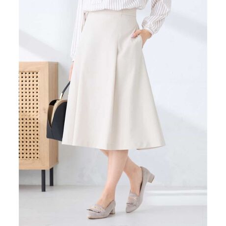 裾にかけて広がりすぎないフレアが上品な麻調素材スカート。