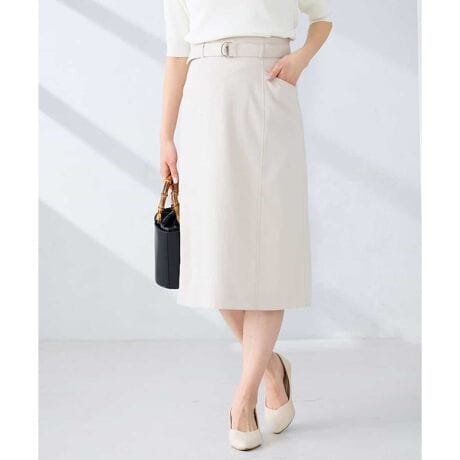 ウエストタックですっきり見えする麻調素材のタイトスカート。