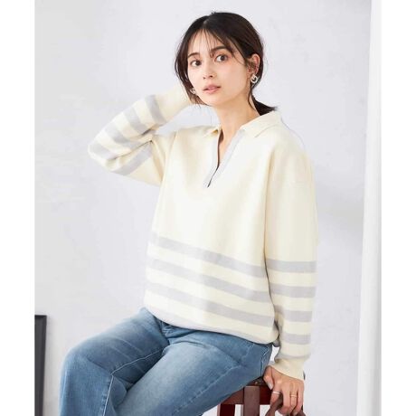 ・身頃下、袖口に入った太めのボーダーがアクセントに