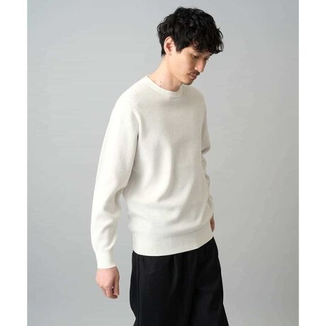 きれいめ上品で表面感が特徴的なクルーネックニット。