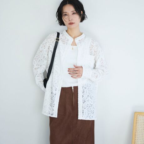 シアーなレースでも甘くなりすぎないデザインシャツ