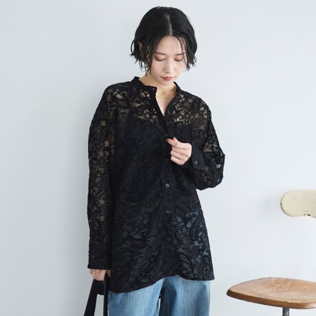 シアーなレースでも甘くなりすぎないデザインシャツ