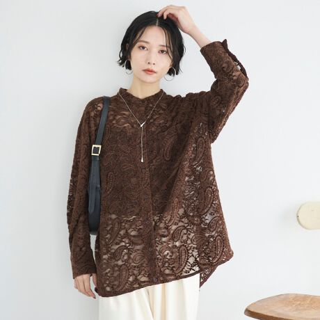 シアーなレースでも甘くなりすぎないデザインシャツ