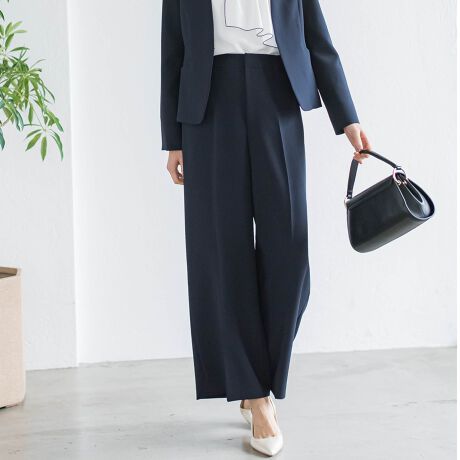 「ストレッチ」「ウォッシャブル」を兼ね備えた梳毛調ストレッチ素材“トリクシオンシリーズ”を使用したワイドパンツ。