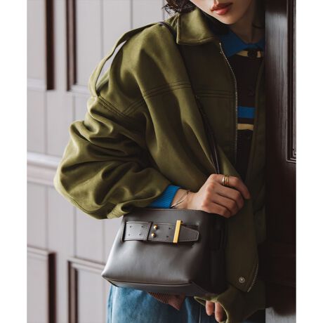 トレンド感のあるベルトデザインが目を惹くレザーショルダーバッグ