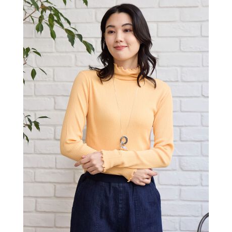 素材の柔らかさとフィット感が肌に心地よいタートルネックのカットソーです。