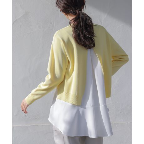 サラッとした糸を使用しサイズも少しゆるっと着心地良いコンパクトなニットと裾のフレアが可愛いブラウスのセットです