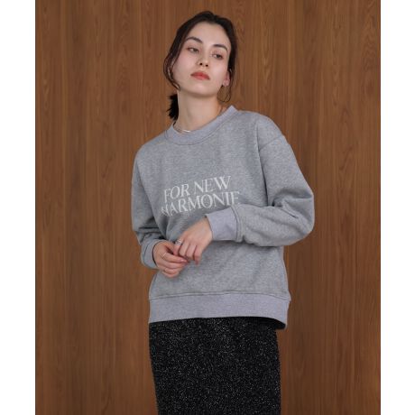 すっきりとしたシンプルなシルエットに、大人っぽい字体のレタリングロゴを添えたプルオーバー。ロゴはフロッキー加工で仕上げており、さりげない立体感と上品さを演出します。コンパクトな見た目なので、ワイドパンツや柄ボトムとも好バランス。一枚でもインナー使いでも着回しやすく、日常のコーデに自然となじむ一着です。