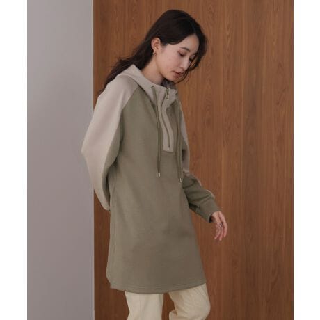 バイカラーのフーディデザインがモードスポーティなチュニックアイテム。