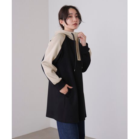 バイカラーのフーディデザインがモードスポーティなチュニックアイテム。