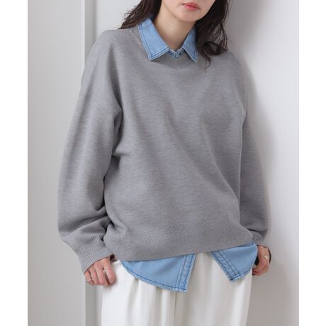 スウェットライクなシルエットでリラックス感たっぷり。それでいて、浅めのVネックが首元をすっきり見せ、自然と大人っぽい印象に。程よい厚みと伸びのある編地で、動きやすくストレスフリー。