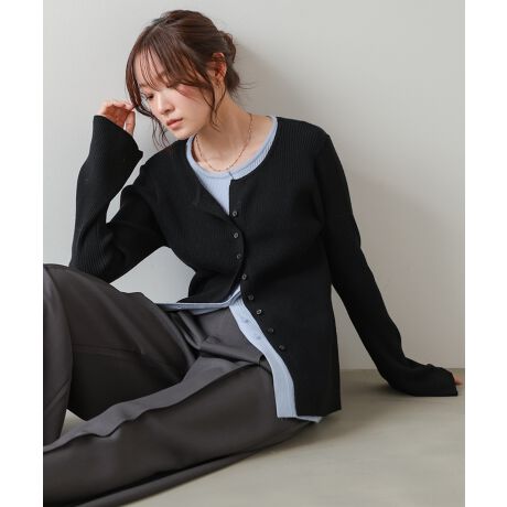 配色デザインでレイヤード風に見せた、着映え力のあるニットカーディガン。実は一体型になっており、重ね着いらずでバランスの取れたスタイリングが完成します。ボタンの開け閉めによって印象を変えられるので、きちんと感のある着こなしから程よく抜け感のあるスタイルまで幅広く対応。アイボリー×グレーは上品に、ブラック×ブルーは洗練された印象に、グレー×ピンクはさりげなく女性らしいムードを演出してくれます。通勤からデイリーまで活躍するレイヤードニットです。