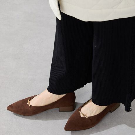 通勤 にもおすすめ【25秋冬新作】ラインメタルパーツ ポインテッドトゥ パンプス /55304