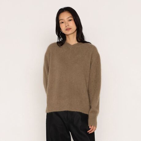 ふんわりと包み込まれるような柔らかな風合いと、予想以上に軽いラクーンシルクVネックプルオーバーです。