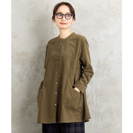 【季節の深まりに寄り添う、コーデュロイバンドカラーシャツ】