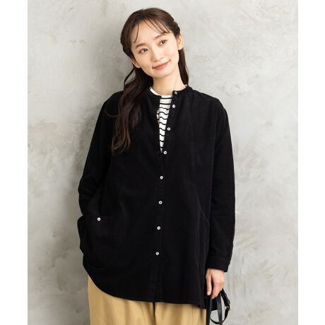 【季節の深まりに寄り添う、コーデュロイバンドカラーシャツ】