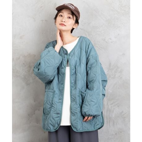 丸みのあるキルティングデザインが女性らしい印象のジャケット。