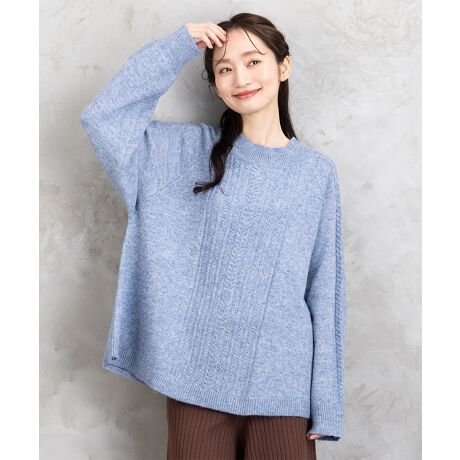 立体感のあるケーブル編みが印象的なニットプルオーバー。