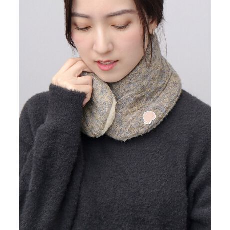 シーズンムード溢れる、メランジ調のケーブルニットのコンパクトネックウォーマー。サイドに配置された、ハリネズミのリッチな刺繍ロゴがワンポイントに。