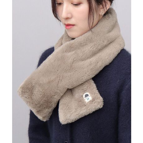 首元を優しく包み込み、温めてくれるファーティペット。サイドのブランドタグがワンポイントに。