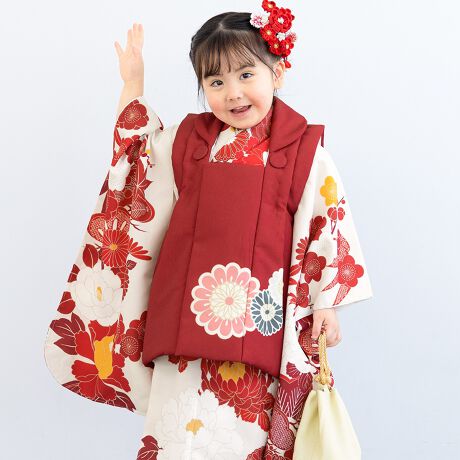 女の子の七五三やお宮参りにおすすめな女児用着物セットです。
