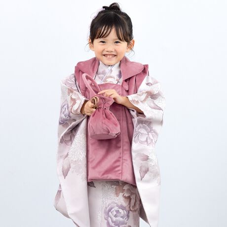 SOUBIENのプライベートブランド『floro by SOUBIEN』(フローロ)から女の子の七五三やお宮参りにおすすめな女児用の被布着物セットです。