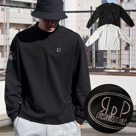 刺繍モックネックロンT